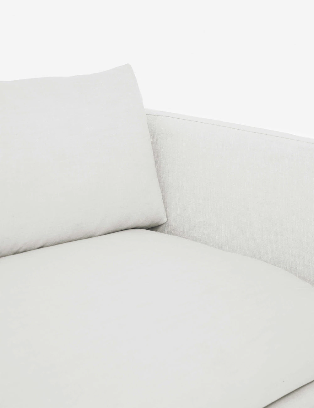Reimagine your living room with this chic, linen sofa. Set on metal dowel legs, this couch offers an airy profile for a look that feels fresh and open. The slim-armed body holds a long plush seat and pillow cushions for a soft and inviting lounge-style seat.