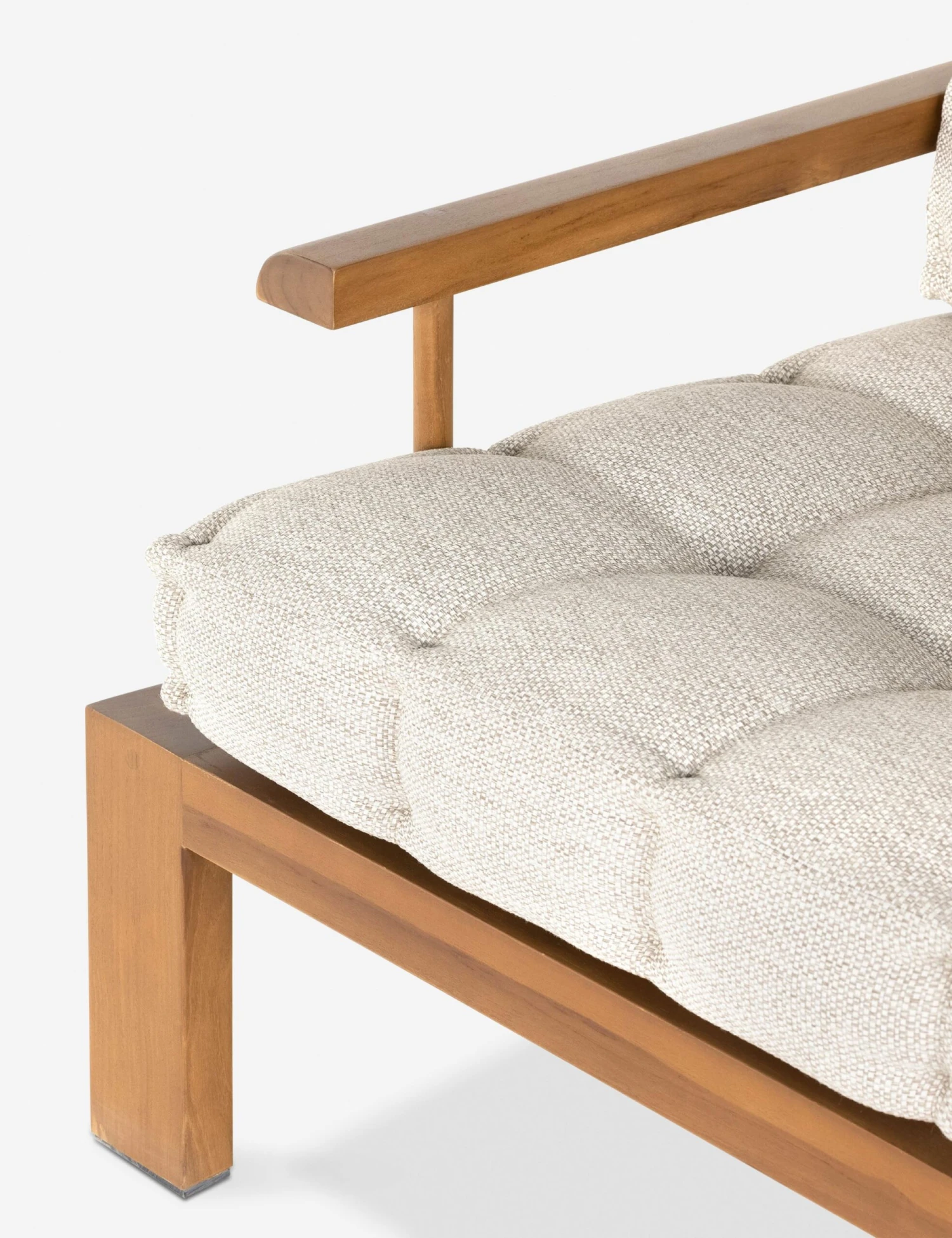 The Amabel accent chair is set for a laid-back lounge. The angular teak frame features rounded arms and a spindle back, offering a breezy indoor/outdoor chair with a dashing silhouette. Tufted cushions complete the look for effortless sophistication from sunroom to terrace.