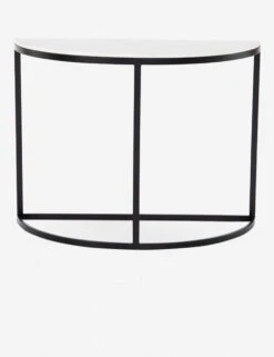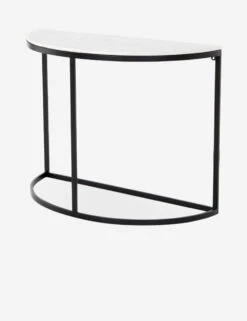 A pretty rounded console table automatically transforms your entryway. Featuring a slim metal frame and half-circle marble top, this curved hallway table is great for contemporary homes.