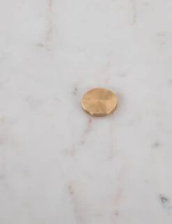 A round, subtly matte marble tabletop seems to float above the natural reclaimed teak base of this coffee table to form a bold centerpiece for your living space. Slim raw brass hardware connects top from base, adding a mid-century touch to this modern piece. Style it with oversized, rounded furniture and tonal, textural rugs.