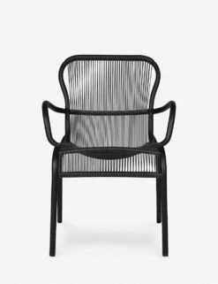 A stylish dining chair with performance upholstery for a comfortable touch indoors or out. The clean-lined teak wood frame features a ladderback design with metal spindles to create a modern dining seat with mixed material appeal.