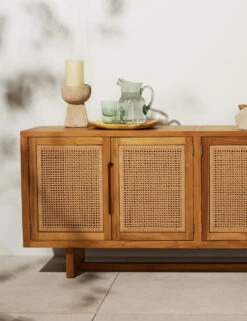 Inspire a space that feels elevated yet timelessly casual with this versatile indoor/outdoor collection. A solid teak frame with all-weather wicker doors offers the Anson sideboard buffet a breezy charm. Create unique storage appeal in a transitional space or outdoor lounge with this sideboard cabinet.