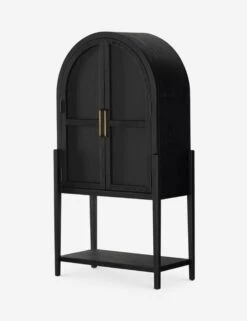 With its stately arched design, this bar cabinet brings practical elegance to any room. Its beautifully-crafted cabinetry of solid oak features versatile interior storage with an open lower shelf, perfect for storing stemware, cocktail glasses, and other barware essentials.