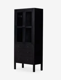 Pared-down lines and dovetail joints define this curio cabinet, bringing a simple, sophisticated look to your space. Crafted from solid poplar, it’s a fresh update to Shaker-inspired style. Glass-front doors and three spacious drawers with iron and leather pulls open to storage and display for everything from dinnerware and linens to books and more.
