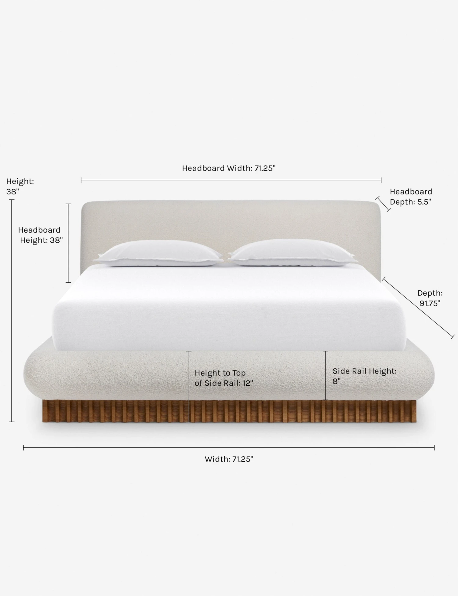This plush, overstuffed bed frame offers a cozy night’s sleep with its signature profile. Set on a rippled wooden plinth base, the bouclé upholstery and gentle lines inspire a cloud-like softness you’ll love climbing into. This bed is from our exclusive Sarah Sherman Samuel collaboration and features all the trademarks of her warm, edited style.