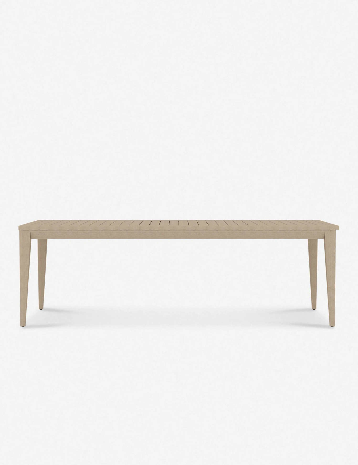 Anchor your patio dining set with a table that blends modern style with a casual tone. This spaciously proportioned dining table features tapered legs and a slatted top fashioned from FSC-certified teak wood, finished for outdoor appeal.