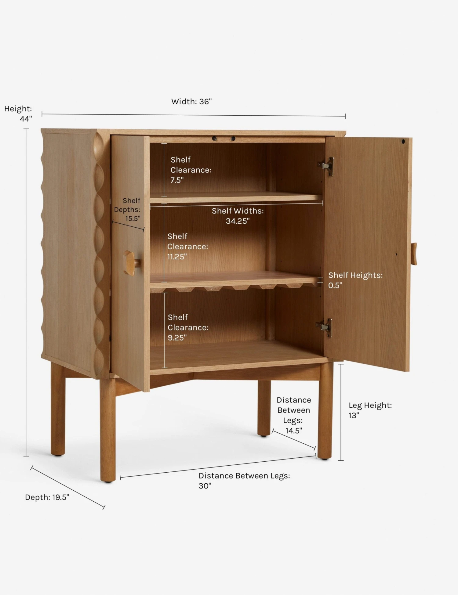 Eny Lee Parker brings her thoughtfully grounded approach—an embrace of slowness, intention, and respect for nature—to an exclusive collection with Lulu and Georgia. The Cami bar cabinet casts a stylish profile with its natural oak grain and corner detailing. Inside, a reversible wine shelf brings functional appeal to the elegant form.