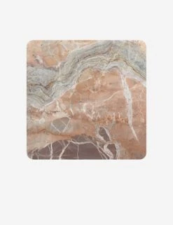 Rich mineral tones pour through the polished surfaces of this solid marble coffee table. The gently rounded corners offer a soft contrast against the crisp lines of the angular legs setting this square coffee table up for luxe impact in a curated space.