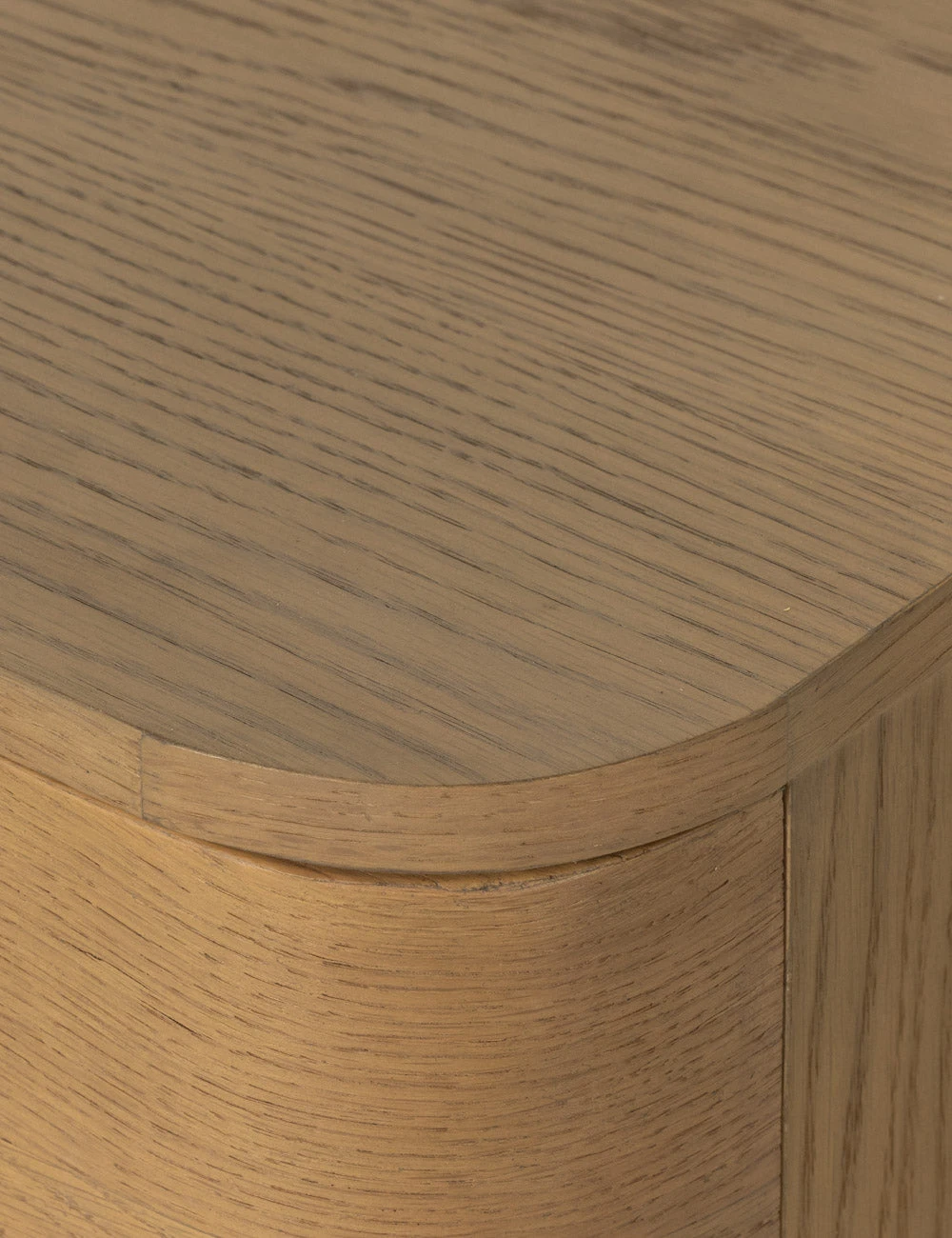 Bring a dramatic edge to your bedroom set with the Cyrus Collection. Clad in an oak veneer burnished to highlight its beautiful natural grain, this nightstand sits on a chunky pedestal base setting off a unique silhouette. The iron pulls add a modern touch to the curved-front drawers offering spacious bedside table storage.
