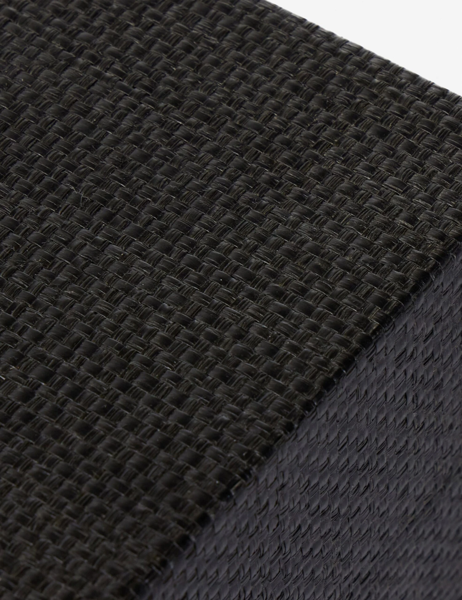 This woven raffia nightstand offers textural impact with a clean, linear silhouette. The two-tone finish of the black raffia against the warm mahogany base adds impact for a modern look and feel. Its wide profile holds two drawers for ample bedside storage.