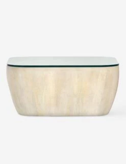 Inspired by the stepwells of India, the Dawes coffee table adds a fresh dimension to your space. The glass top reveals a hollow, hand-carved interior bringing an organic depth to its clean drum shape. With gently rounded lines and a light wood finish, this wood coffee table offers an elegant anchor-piece set for modern decor.