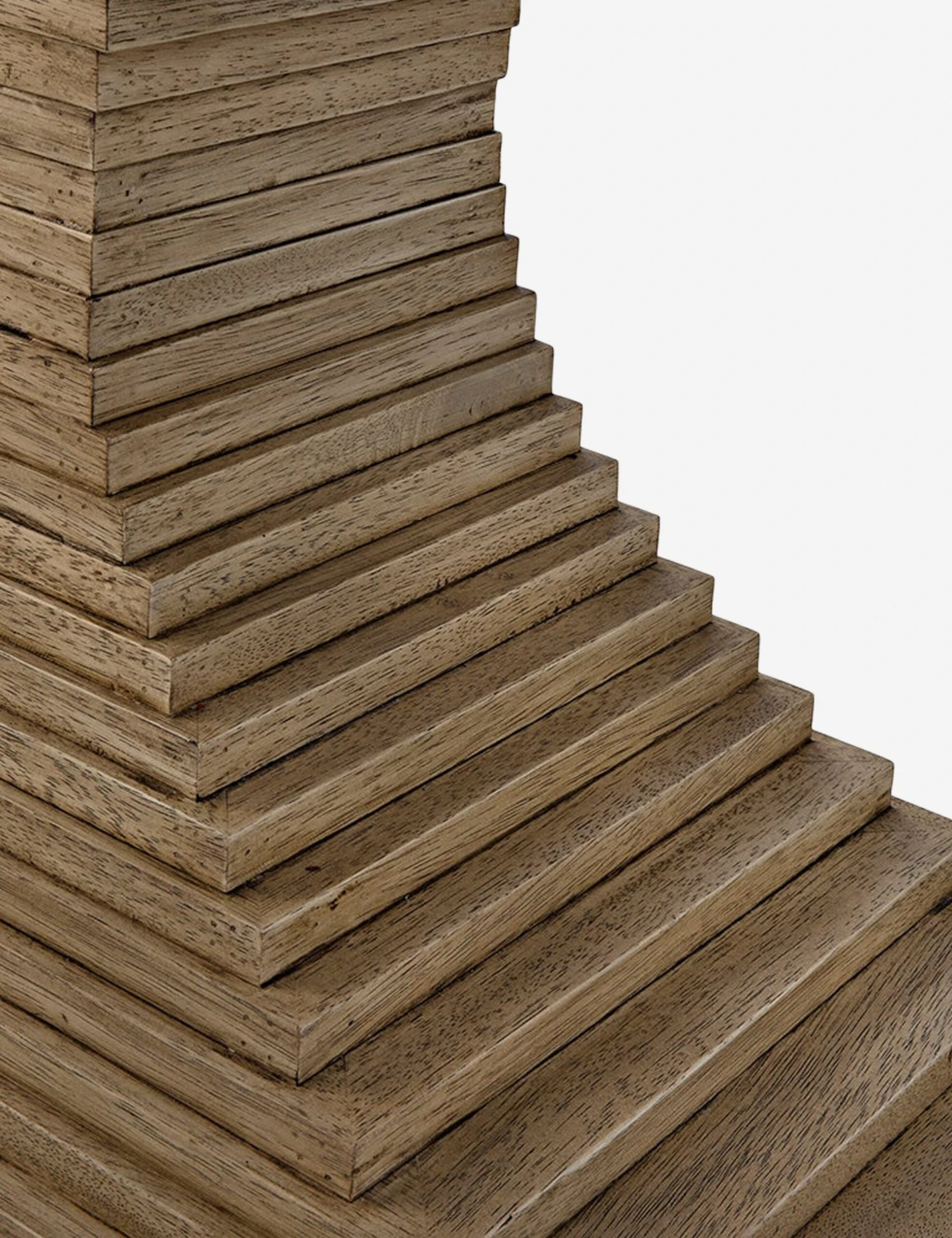 Stacked walnut pieces with a bleached finish lends this console table a layered, hewn look, while the curved design adds depth and movement. Place this piece in your entryway and decorate with minimal accessories or use it as a sideboard in your formal dining space.