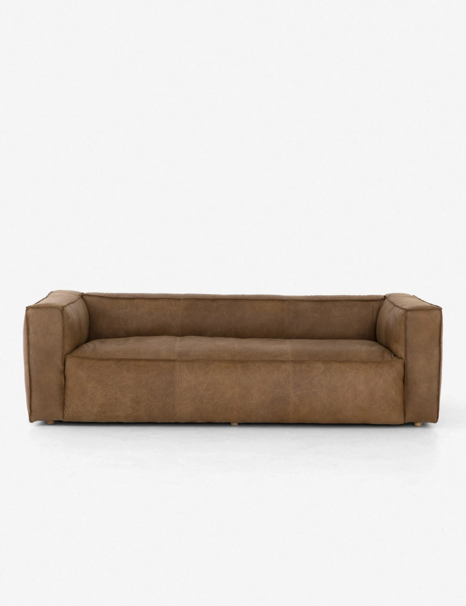 With its low-slung, tight back design and reverse-stitched detailing, our Graham Leather Sofa marries understated style with premium leather upholstery. Better still, its top-grain leather, in a rich, brown finish, will develop a beautiful patina over time, for a luxe, lived-in look.