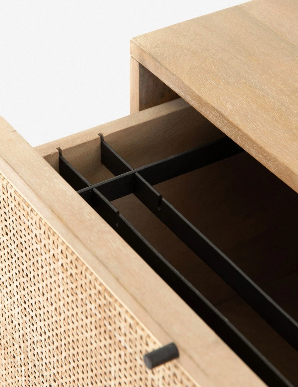 Combining natural and industrial materials, this filing cabinet is a must for mid-century office spaces. We love the woven cane inset drawers and minimalistic metal pulls.