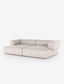 A plush tailored design wrapped in high-performance fabric with a softness resembling a blend of boucle and linen makes this sectional sofa a refined touch of modern comfort. A deep chaise seat design lends this sectional an inviting, relaxed profile to lounge on. Style with natural textures and organic accents for a cozy California feel.