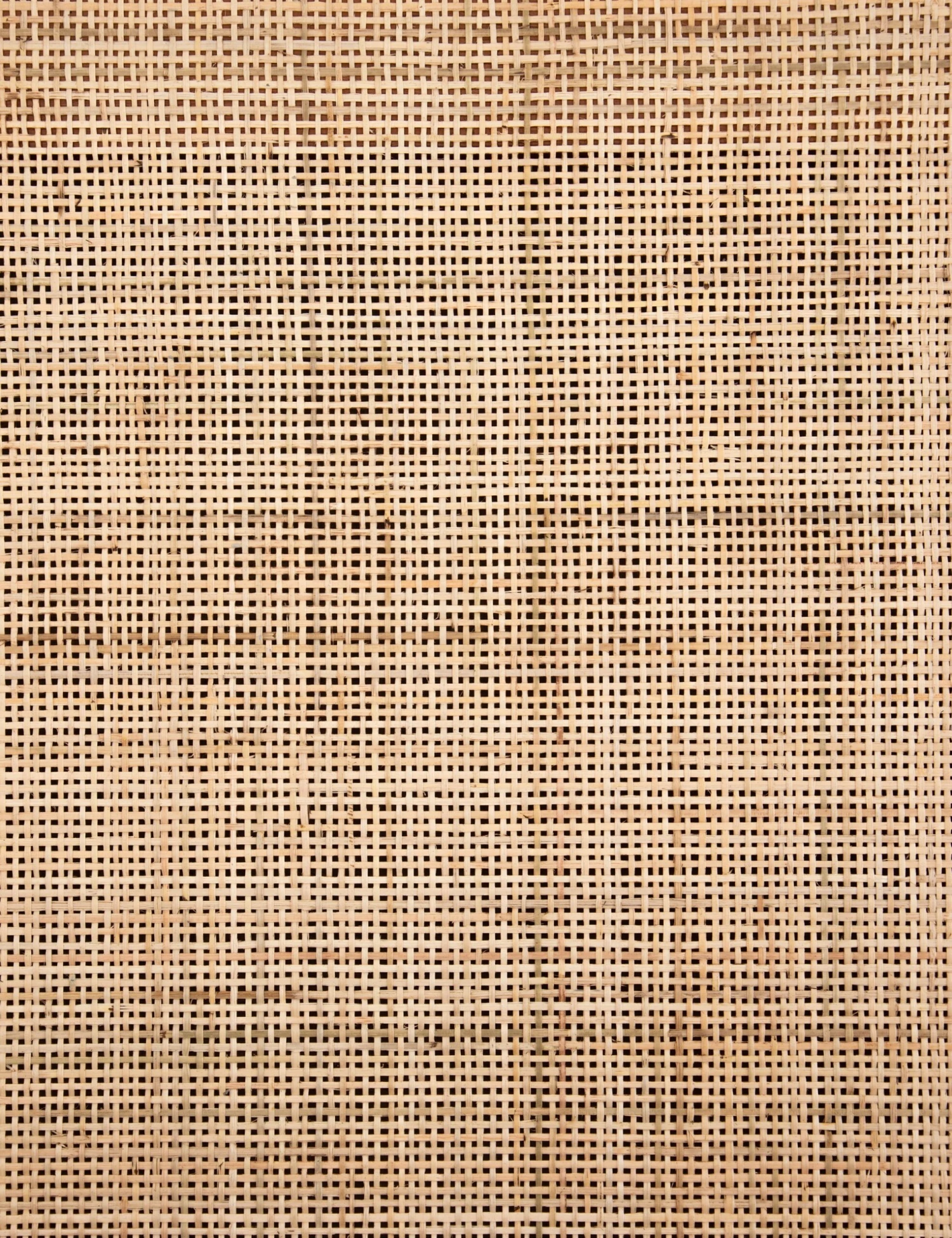 A floating design is clad in finely woven cane with mahogany backing to offer this bed an airy profile with natural textural appeal. The charcoal-finished iron base and wood stretchers ground this woven bed frame with headboard design with a touch of contrast for refined style in a fresh tone.