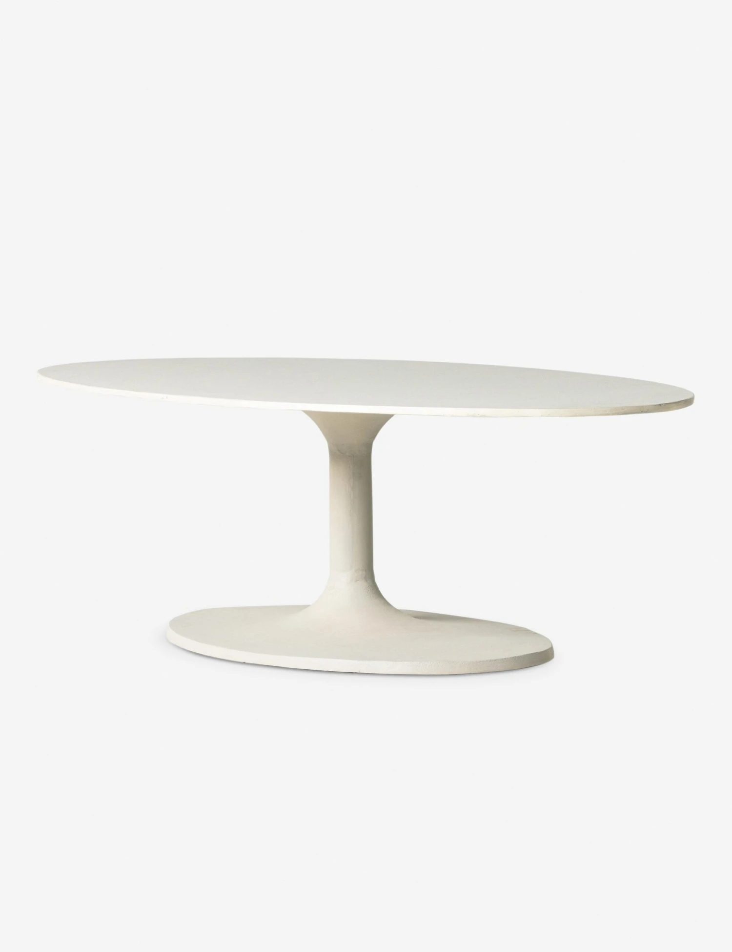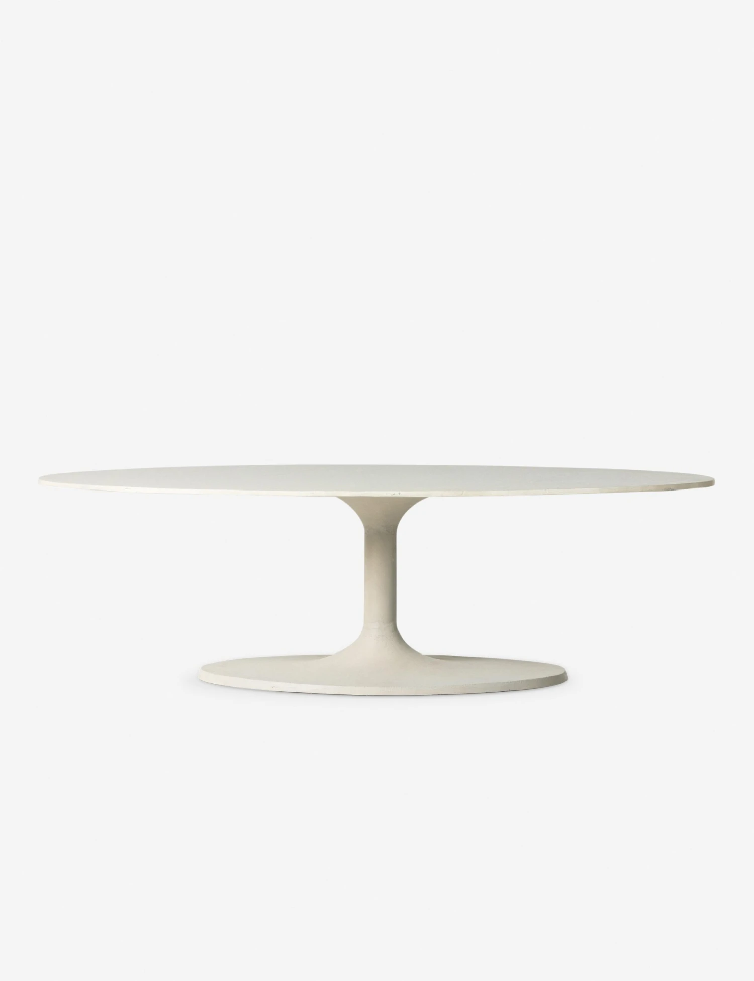 Dramatic lines bring a classic modernist feel to the Inga coffee table. The tulip base and oval top fashion an irresistibly chic silhouette, while the textural cast aluminum is set for style indoors or out. Strike a stylish statement from patio to lounge with this minimalist coffee table design.