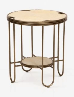 Combining all of our favorite elements of Art Deco style and natural materials, this round, tiered side table is a luxe statement with diamond-textured rattan and a curvy bronzed steel frame. It looks amazing topped with your favorite houseplant or a bold sculpture.