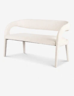 Sculpted lines and allover performance upholstery add a stylish edge to this dining bench. The shapely silhouette will elevate the tone of your dining room or entryway with both modern appeal and a practical touch.