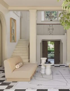 Add polish to your space with this sofa featuring an armless, streamlined design for the ultimate in comfort and style. Upholstered beam legs add an artful detail and give this living room sofa a subtle, airy feel. This piece is from our exclusive Sarah Sherman Samuel collaboration and features all the trademarks of her warm, edited style.