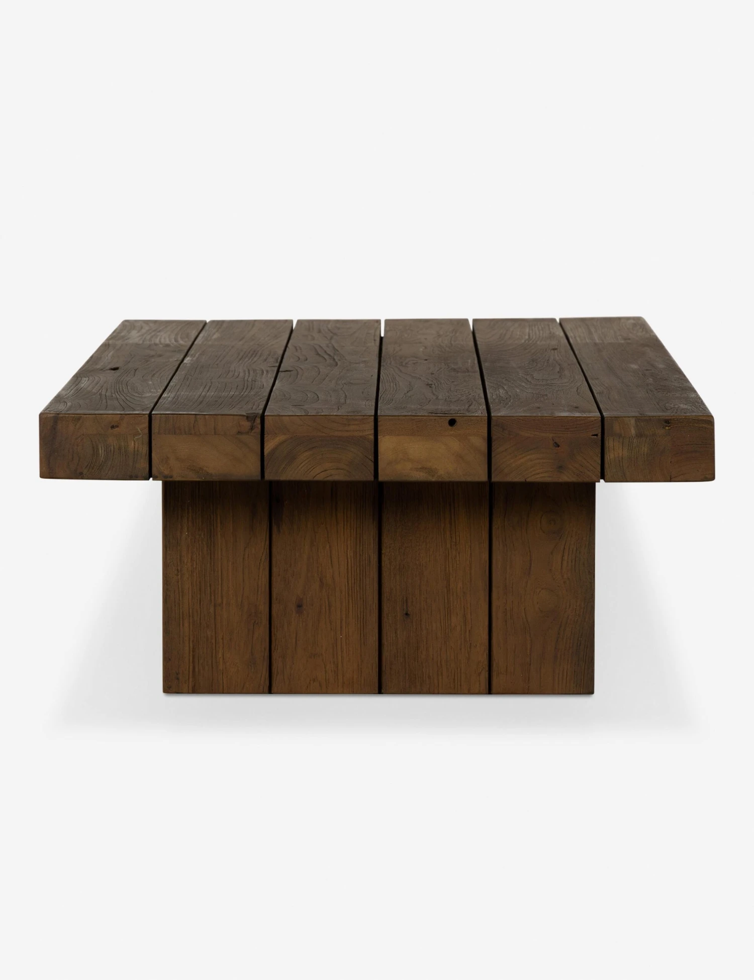 Indoors or out, a lounge should feel anchored and grounded. This coffee table is fashioned from thick cuts of reclaimed teak, all clad in a dark finish for a timeless quality. With its sturdy construction and elemental lines, this minimalist coffee table will offer an elegant centerpiece for seasons to come.