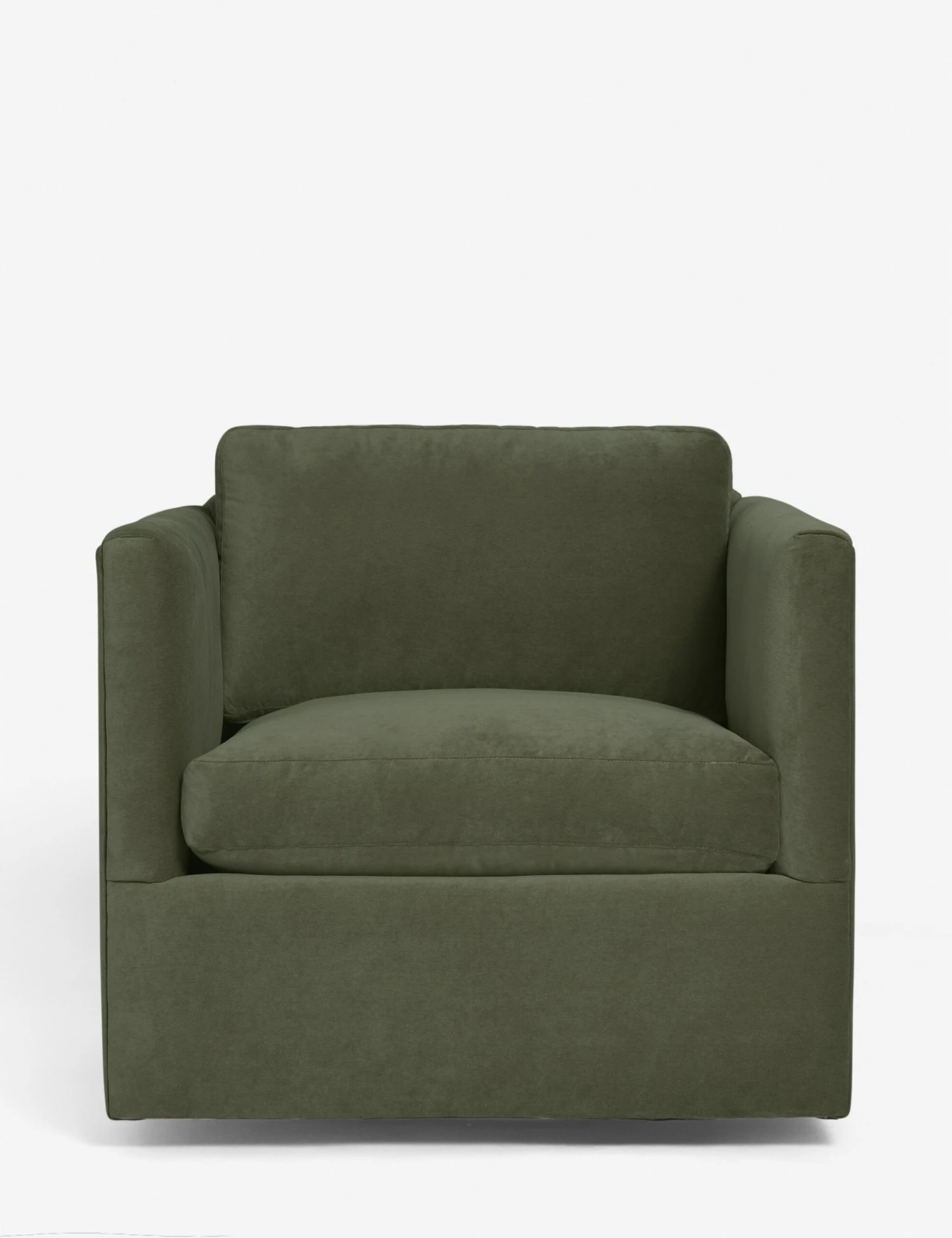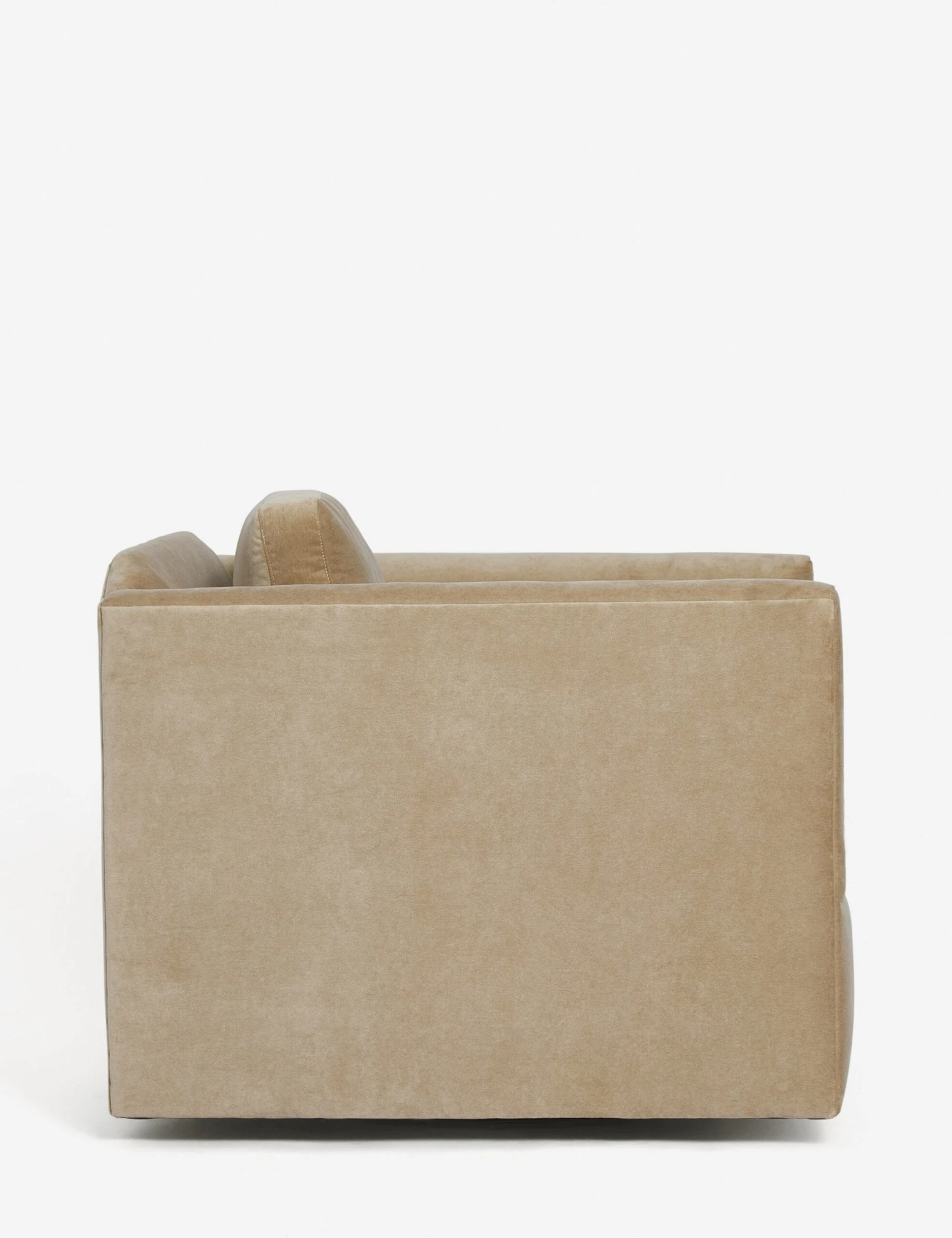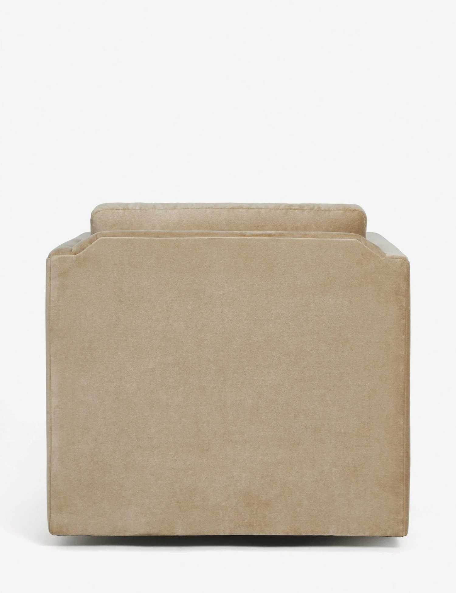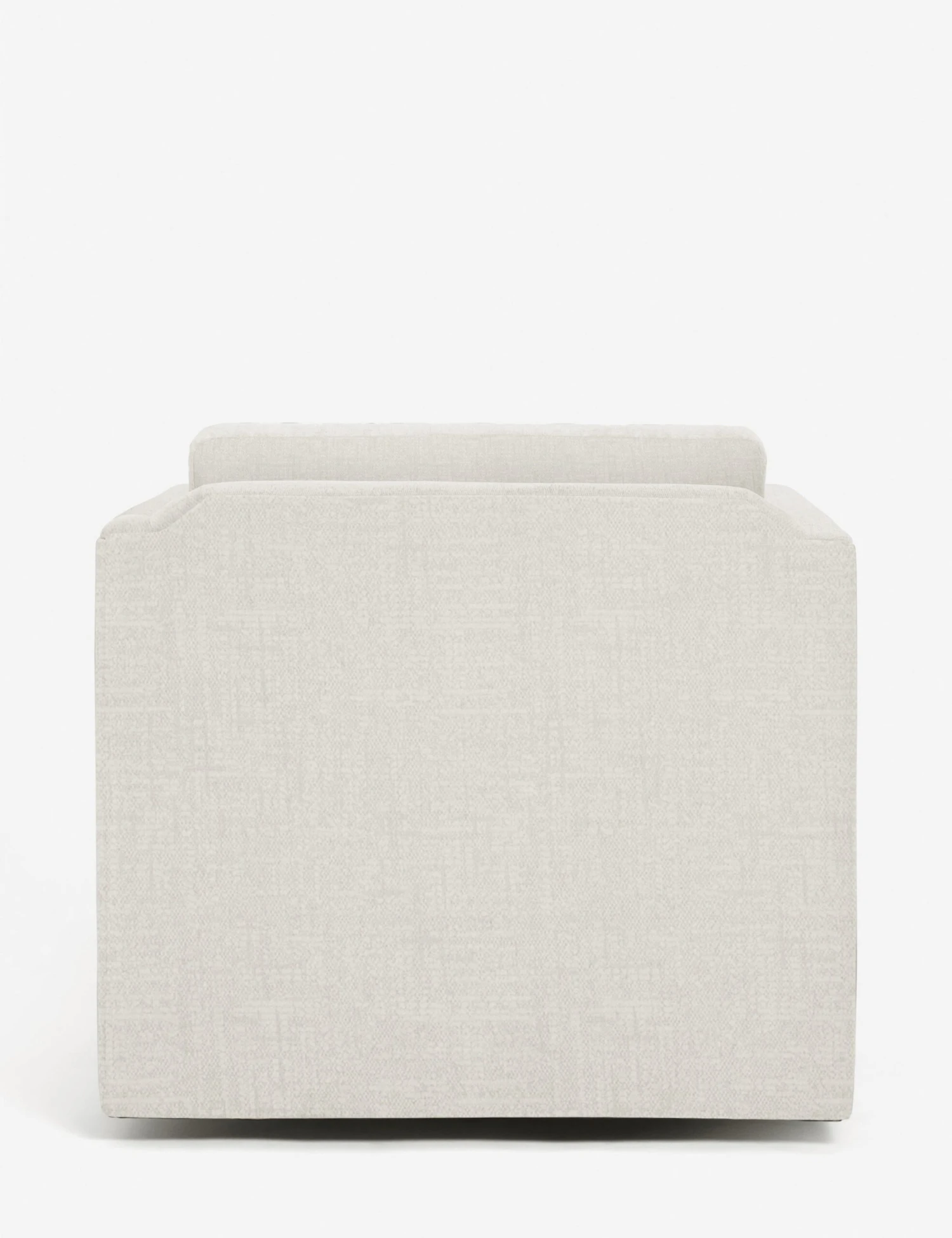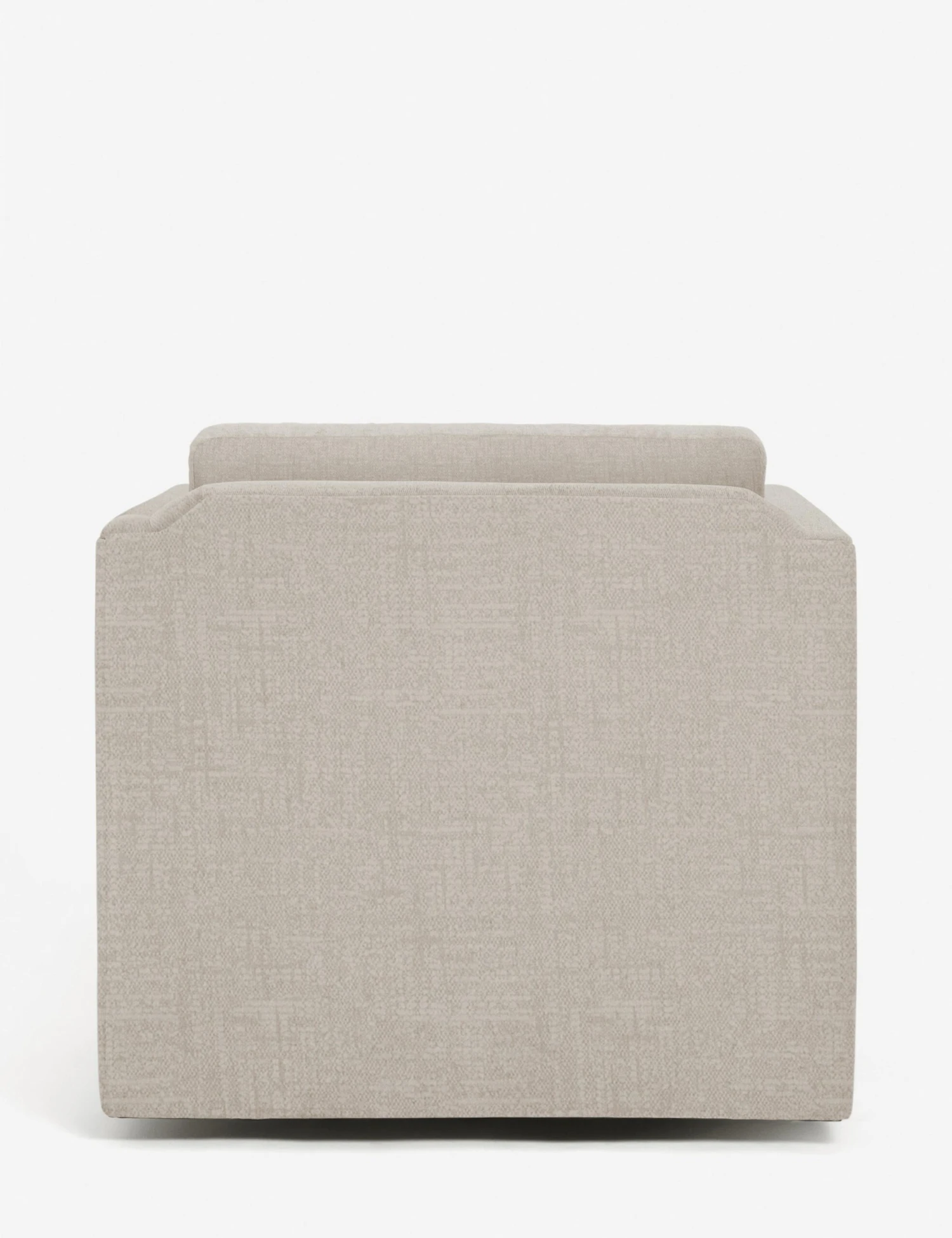 Crisp upholstery accentuates the clean lines of this swivel chair. Available in a beautiful selection of earth-toned fabrics the deep seat and shelter-style design offer a refined look that complements its swivel functionality. Style this accent chair with some luxe throws and sculptural side tables to elevate its soft visual appeal.