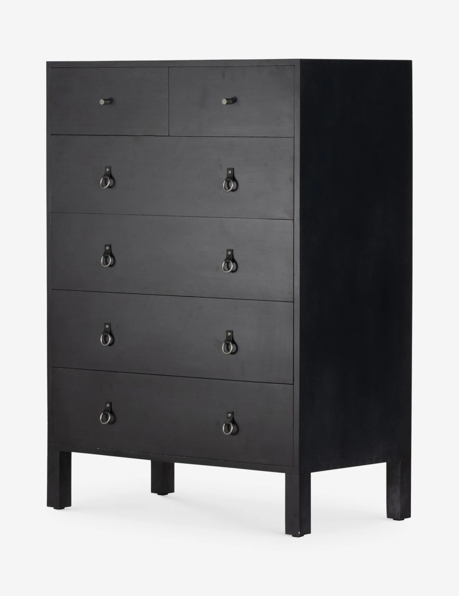 Simply inspired, the Maeve dresser combines clean lines with dovetail joints in a Shaker-inspired design. This tall wood dresser features six spacious drawers with iron and leather pulls for an industrial touch. The highboy design is perfect for a small-space layout.