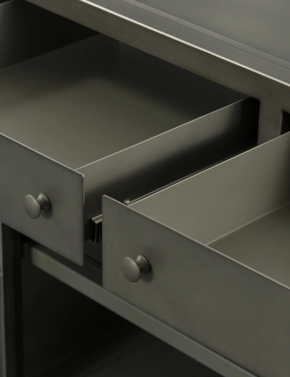 In a sleek nod to a shadow box design, this console table features an iron frame with glass doors for storage and display. The Malcom Media Console offers four drawers, spacious shelving, and rear cutouts for a clean look with an industrial edge.