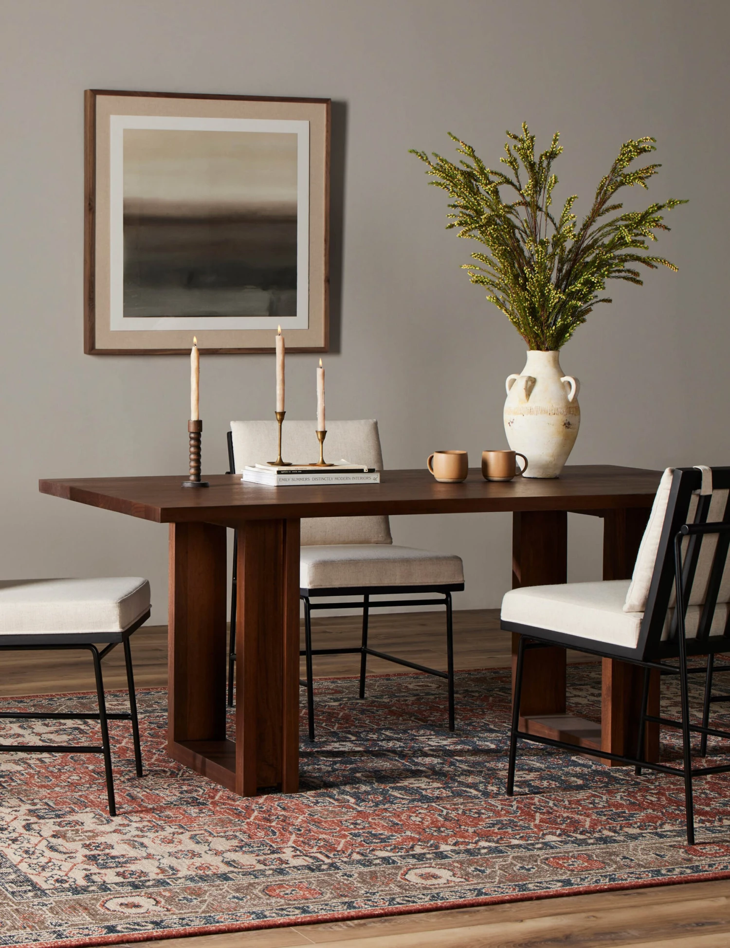 Curating a warm environment starts with your dining table. Mannion features a clean, linear profile that strikes a modern edge with two square legs setting off the design. A rich finish highlights the natural grain of the wood and brings an inviting tone to this eight-person table.