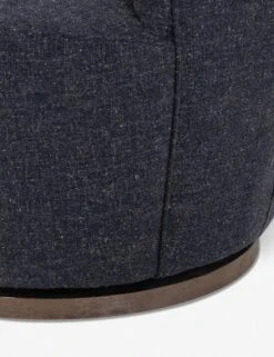 Nubby fabric on the Margie Swivel chair creates an invitation to cozy up and sit. A circular shape makes for a unique piece, and a wooden swivel base allows for conversation in any part of the room.