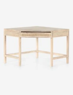 A timeless, clean-lined silhouette is elevated by detail-rich wood grain and woven cane drawer front to create this Margot Corner Desk. Crafted from natural mango wood, its whitewashed finish complements the cane pencil drawer for a tonal storage piece. Style this slim-lined workstation alone, or pair it with a matching desk or file cabinets.