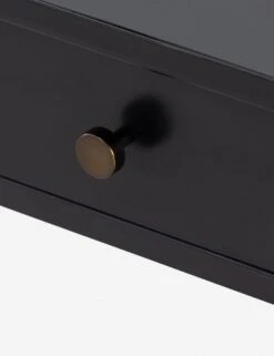 Blending sleek style with industrial undertones, this black-finished iron desk casts a clean, spare silhouette with bronzed hardware for modern appeal. Dual drawers add convenient storage to this streamlined design.