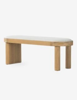 The McNamara collection is soft, modern, and full of organic warmth. Contrasting legs and an upholstered seat fashion this bench for stylish impact. The performance boucle offers an inviting seat made for everyday appeal in an entryway or lounge.