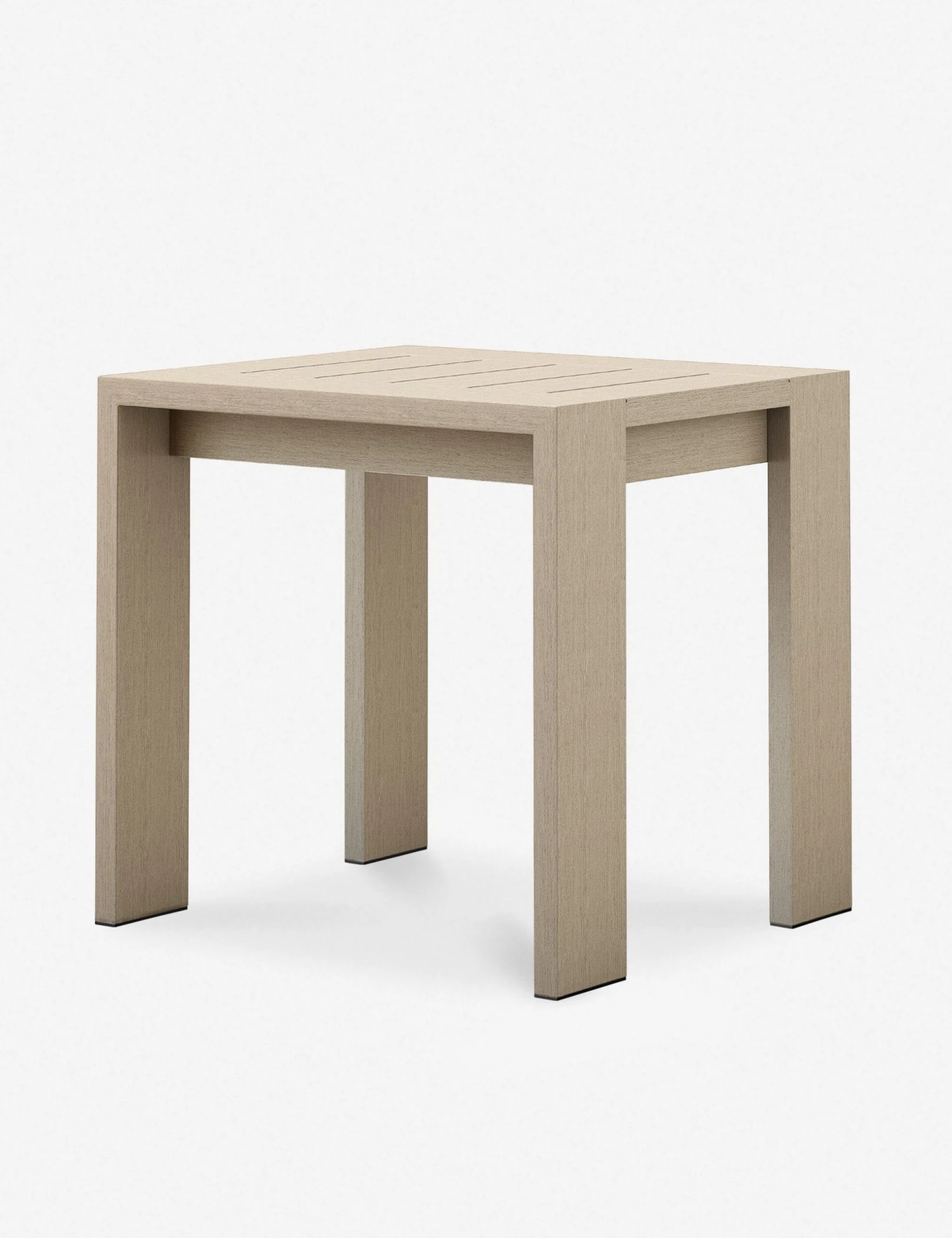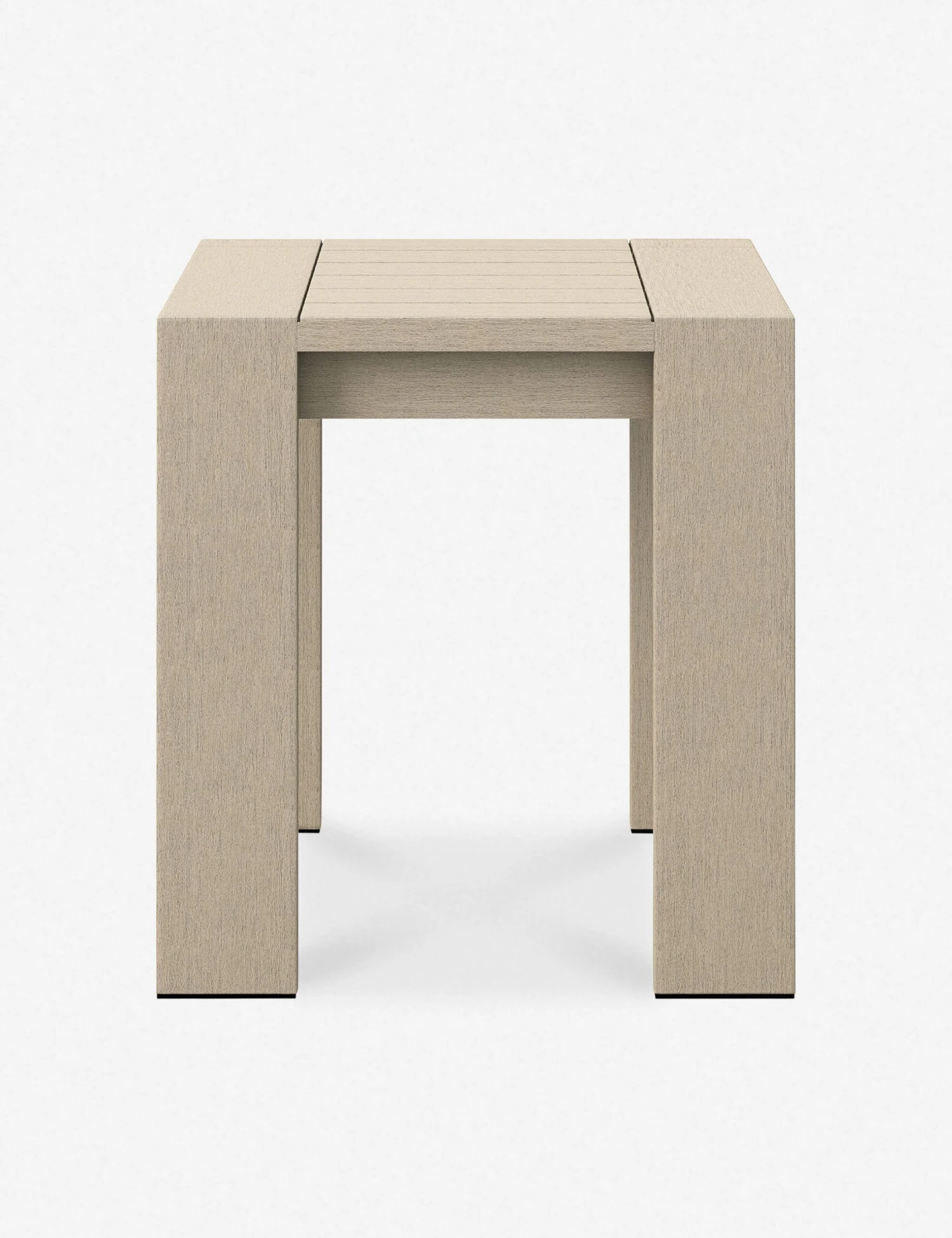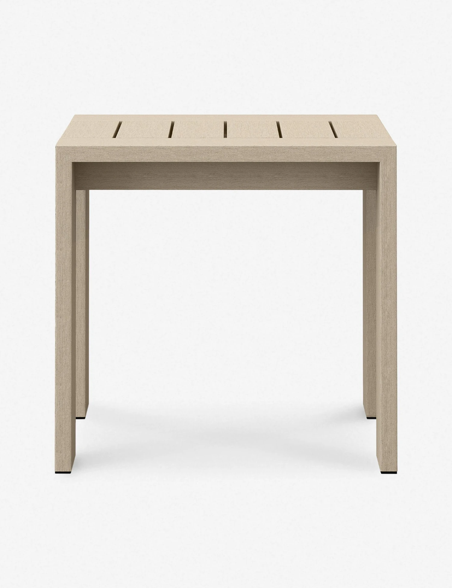 The Mona Collection features architectural lines and teak wood construction to cast a clean, stylish silhouette for outdoor bliss. With a slatted top and streamlined design, this wood side table is the perfect touch for minimalist appeal in a patio lounge. Style this end table for a soft functional accent with a crisp visual impact.