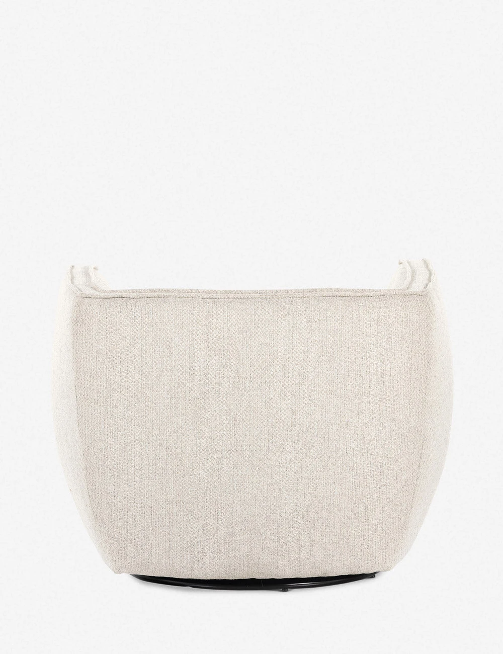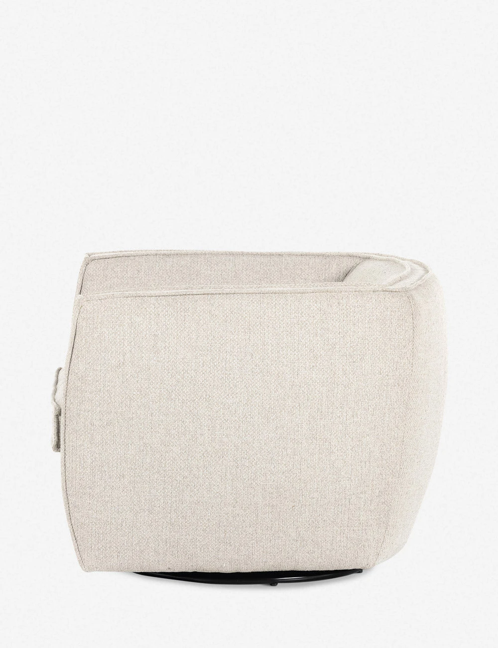 Sustainable fibers and a swivel base spark dynamic appeal in this barrel chair design. With its flange trim and deep seat, this cozy accent chair offers chic flair for your home office or bedroom reading nook.