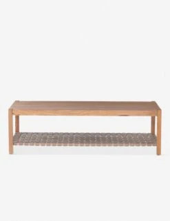 Add in an extra layer of tactile and visual interest with this clean-lined, angular coffee table and its floating leather shelf. Crafted from Rosa Morada wood, which has hints of warm, pinkish tones, it’s finished with a woven, top-grain leather shelf in smoke gray. Style this wood coffee table with neutral gray upholstered furniture and rough-hewn accents.