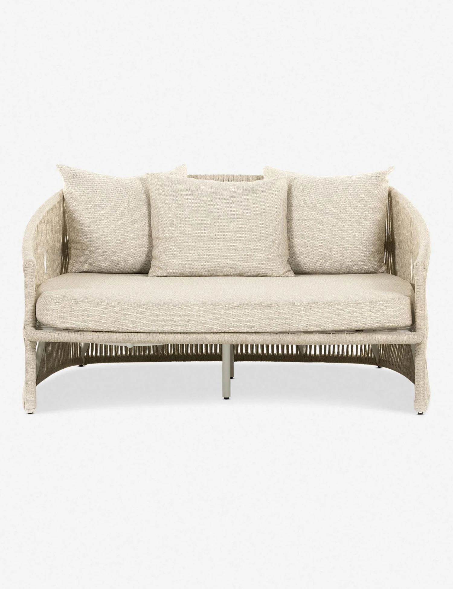 Sprawling comfort abounds in this roomy daybed. The half-moon frame is finished with a woven rope design for textural intrigue and versatile styling potential. Its spacious cushion is upholstered in a UV-resistant, water-repellent fabric so you can style this luxe lounger from the poolside to a sunroom or patio oasis for year-round leisure.