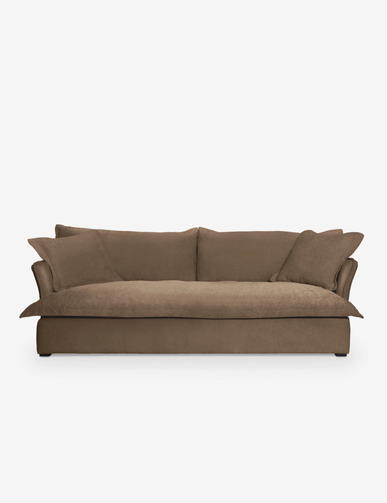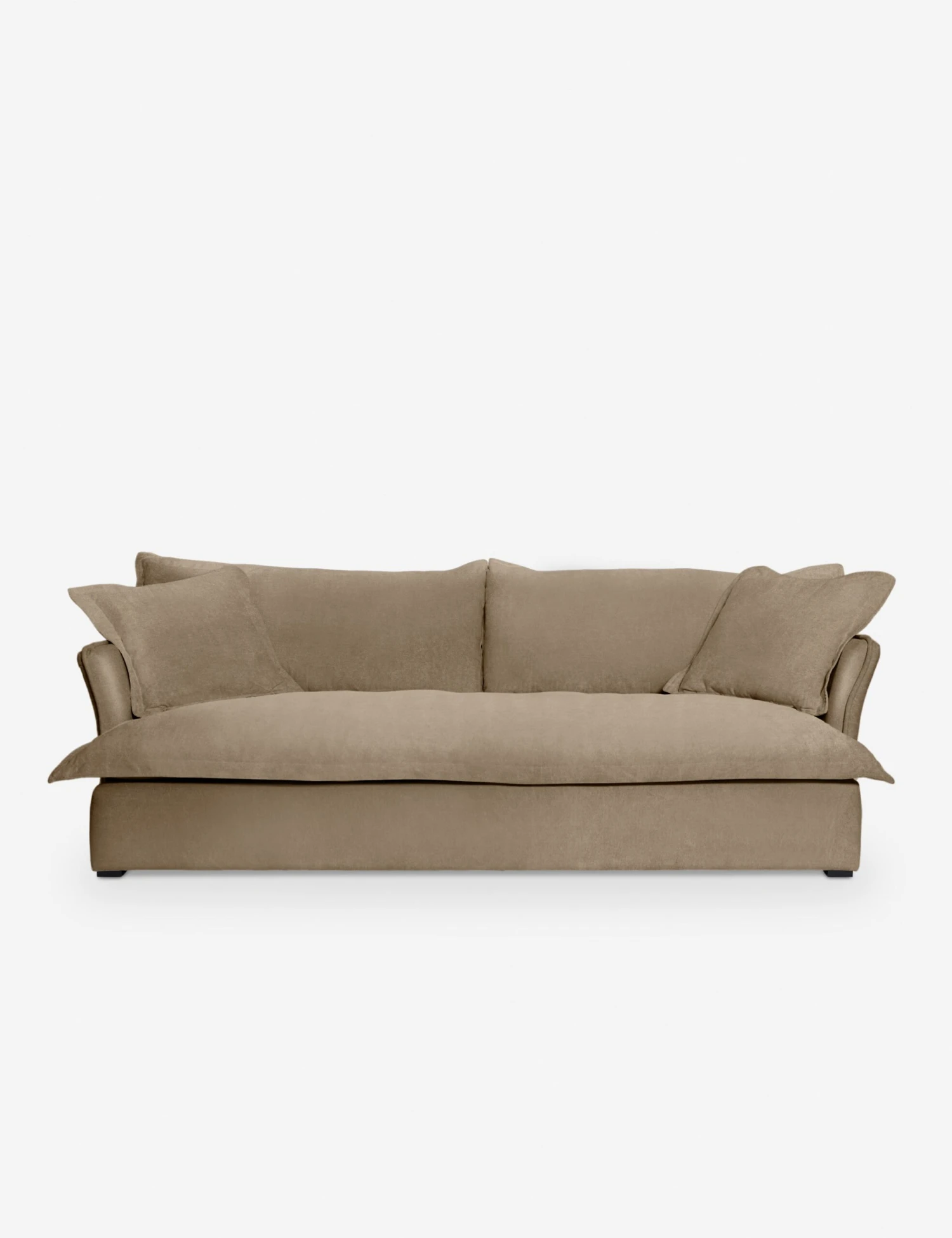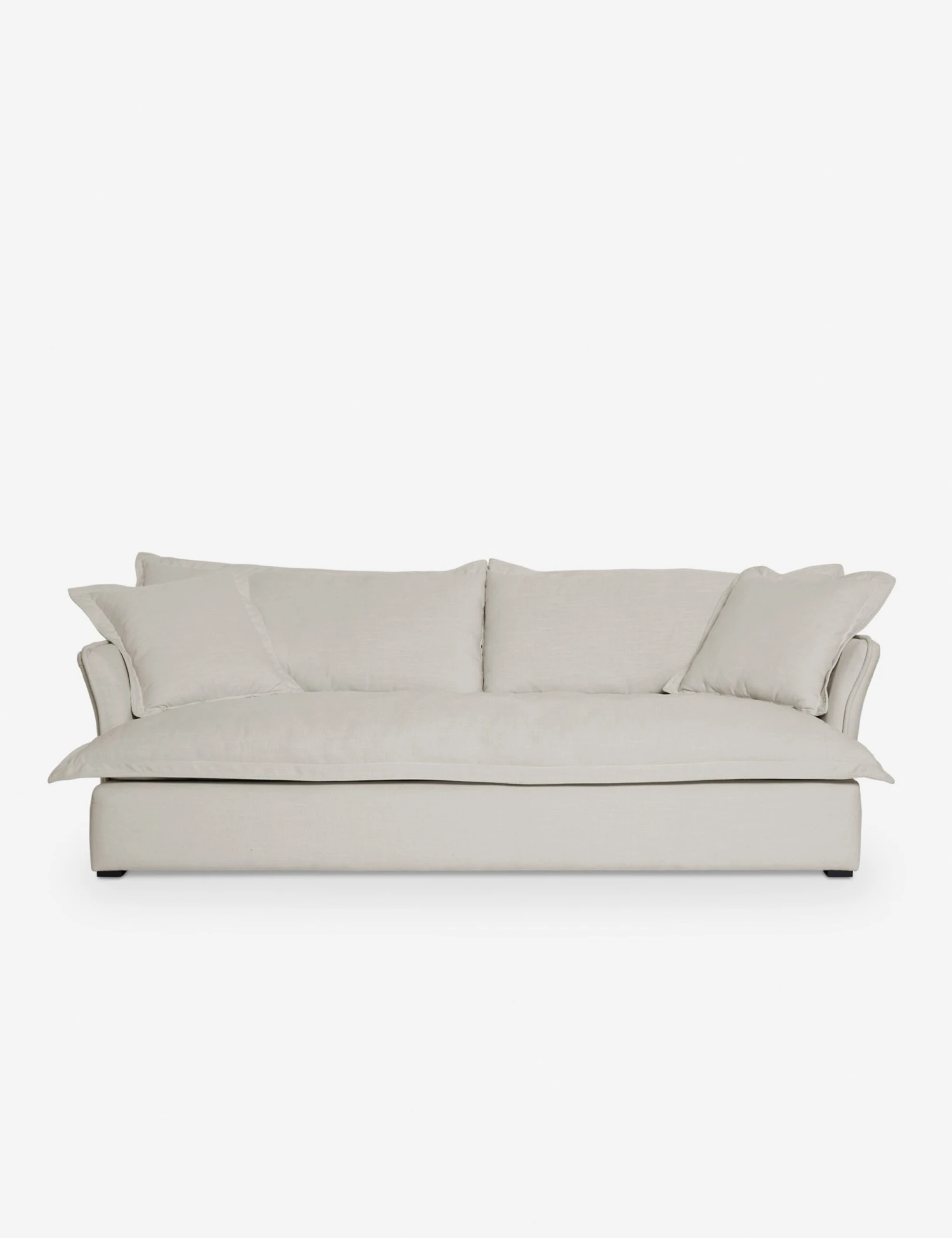 For classic styling with a modern touch, the Royal sofa is set for transitional design. The subtle curve of the couch’s arms and flange upholstery offer a relaxed look that inspires casual elegance in family room or lounge.