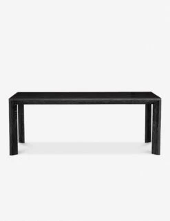 A black-washed oak dining table with a stunning bluestone inset top offers endless visual allure and natural grain surfaces. Style this table with an earth-toned rug to ground your dining room with a moody layer of textural contrast full of dramatic appeal.