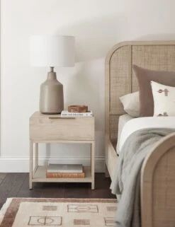 Keep it timeless for a look that’s fresh with Suzette. The collection’s rounded oak frames feature grasscloth paneling for a soft, airy feel full of natural texture appeal. With a low profile and six soft-close drawers, this dresser offers ample storage with surface to spare—style with a round mirror to double as a deco-inspired vanity.