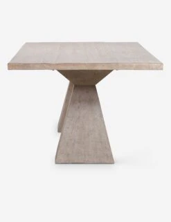 Create a space for plenty with the Thomson dining table. This oversized table is fashioned from reclaimed pine and clad in a light wash finish to evoke effortless sophistication. Geometric pillar legs add architectural appeal setting off the statement-making profile for timeless grandeur.