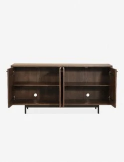 Contemporary style that fits beautifully in any space. Designed with undulating linework carved into the doors, it offers a touch of mod inspiration perfect for living rooms.