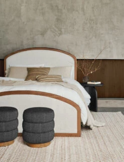 A Brutalist bench with modern leanings, the Vanessa features four tapered iron legs positioned in the center of each side rather than at the corners. The muslin cushion can easily be re-covered to match your space for a more customized look, too.