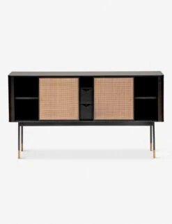 Convenient. Sophisticated. So, so stylish. This functional sideboard is the perfect storage piece for transitional spaces with mid-century leanings, featuring wicker sliding doors, brass accents and two pull-out drawers in a timeless wooden frame.